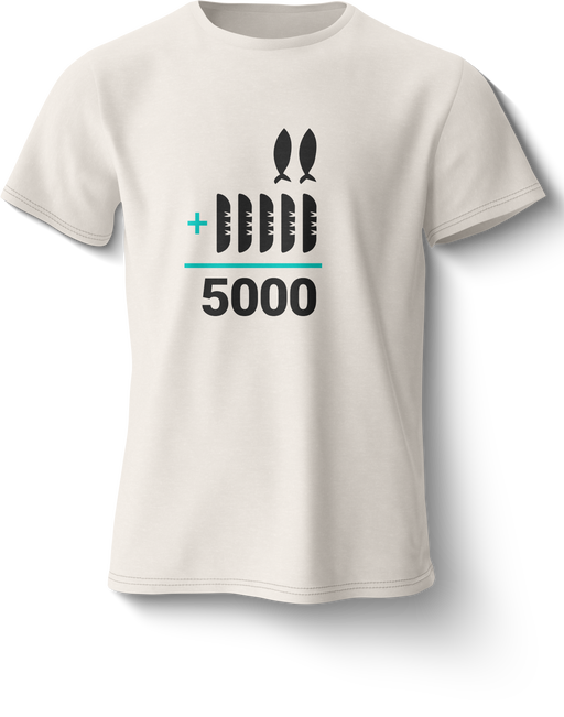 Camiseta clásica de The Chosen haciendo referencia al milagro de la multiplicación de los 2 peces y 5 panes. Horma ajustada (se sugiere 1 talla má...